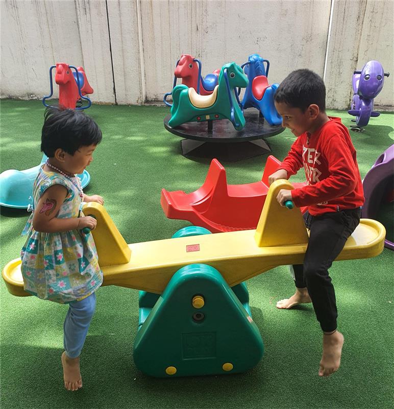 At our preschool, we prioritize the safety and well-being of every child. Our premises, including both indoor and outdoor play areas, are thoroughly disinfected after each session to ensure a clean environment. All toys, equipment, and stair railings are sanitized regularly. Window grills are in place for added security, and an educator supervises the children at all times, providing constant oversight to ensure their safety.